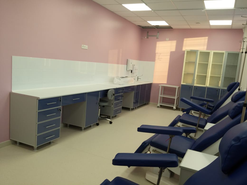 В данном проекте в поле ответственности нашей компании входило: изготовление, доставка, сборка шкафов, мягких диванов, кресел, офисных кресел, зоны регистратуры, фигурных зеркал, обеденых зон и кухонь по разработанному нами и согласованному с заказчиком проекту меблирования здания медицинской клиники.