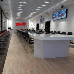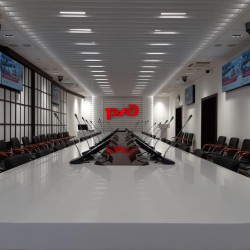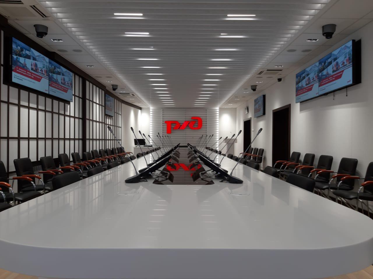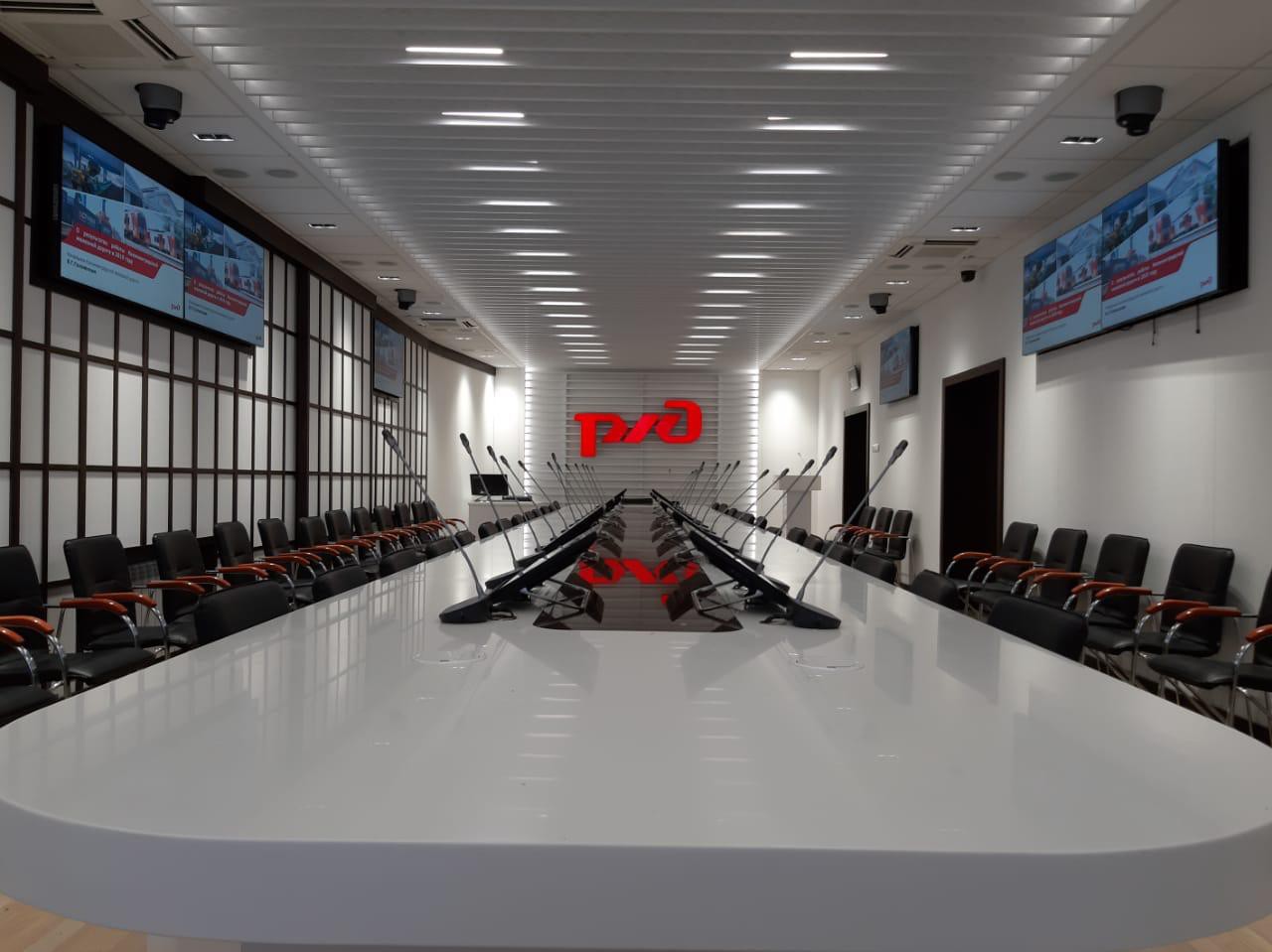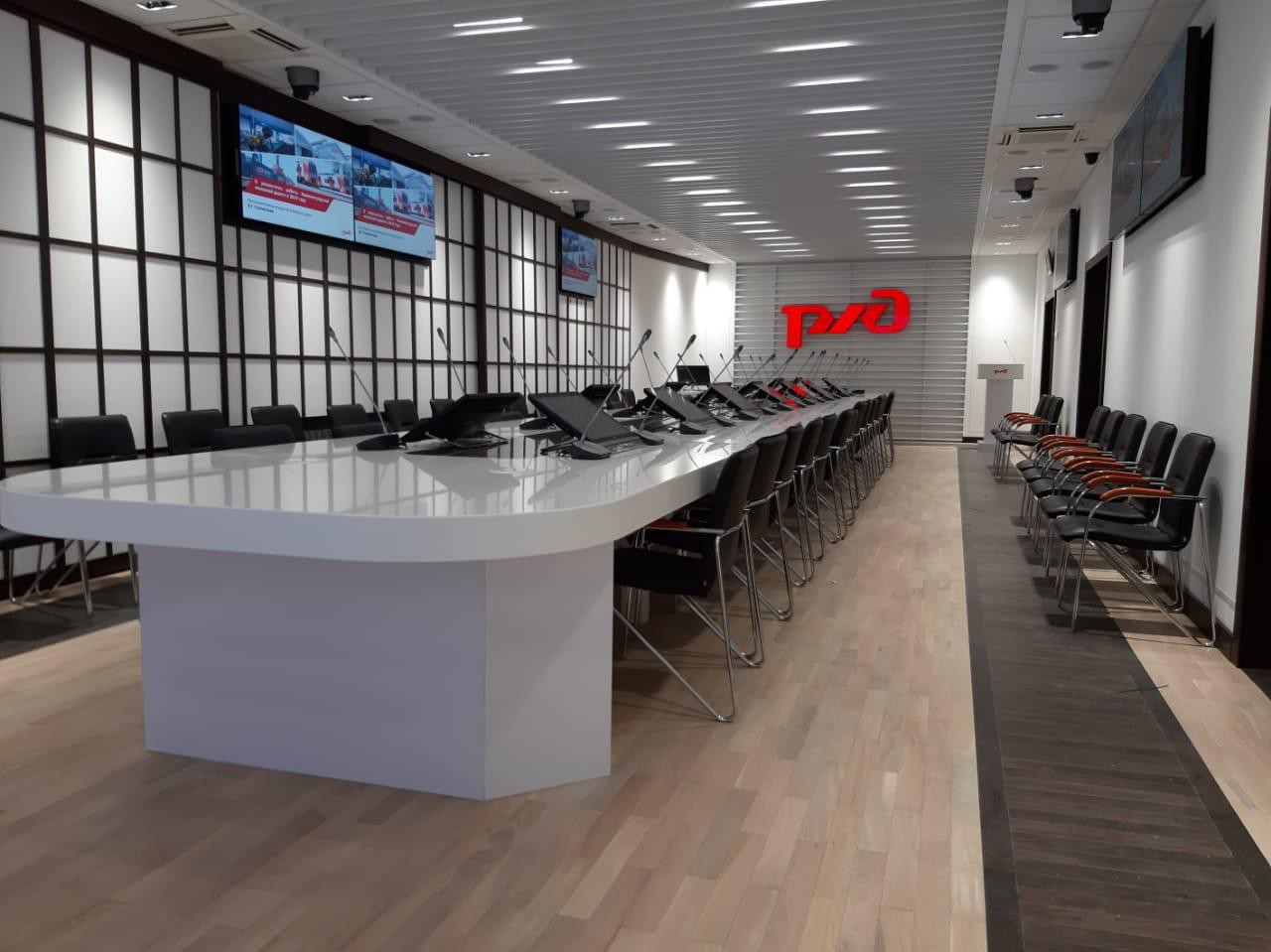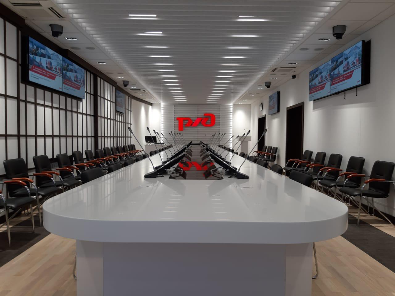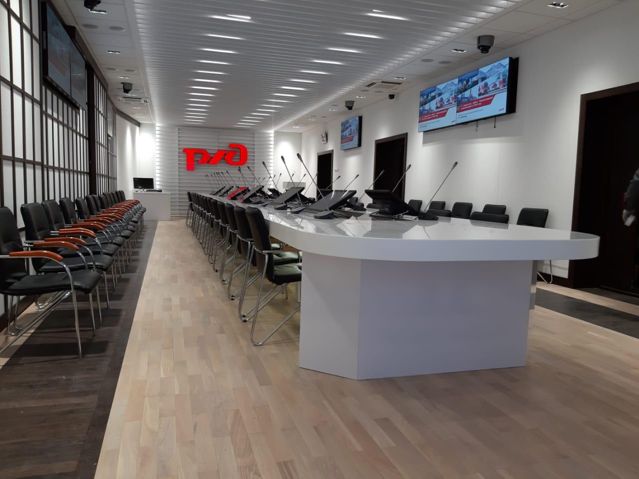 Так же совеместно с нашими партнёрами было проведено проектирование и монтаж оборудования и систем для совещаний.