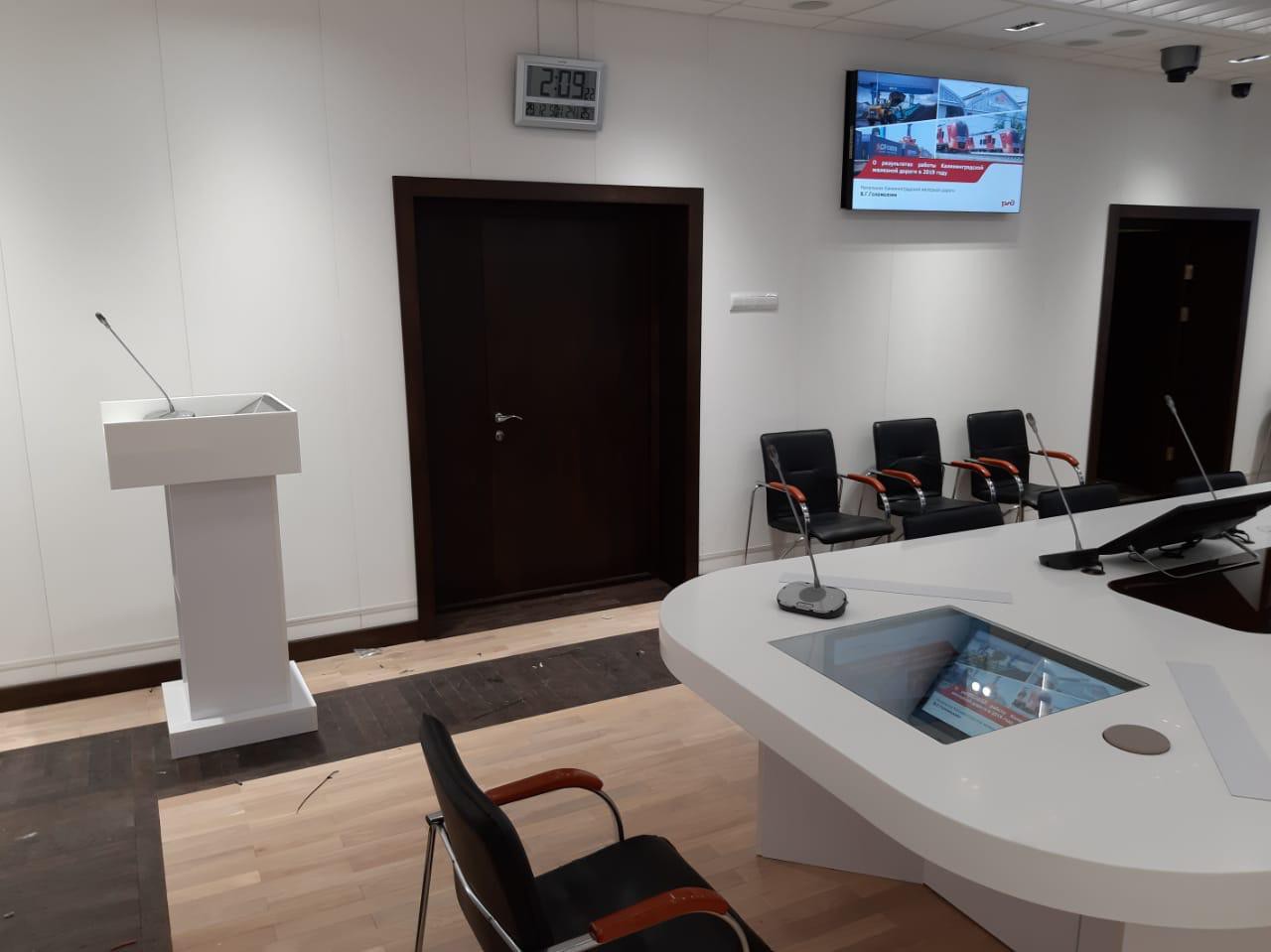 Так же совеместно с нашими партнёрами было проведено проектирование и монтаж оборудования и систем для совещаний.